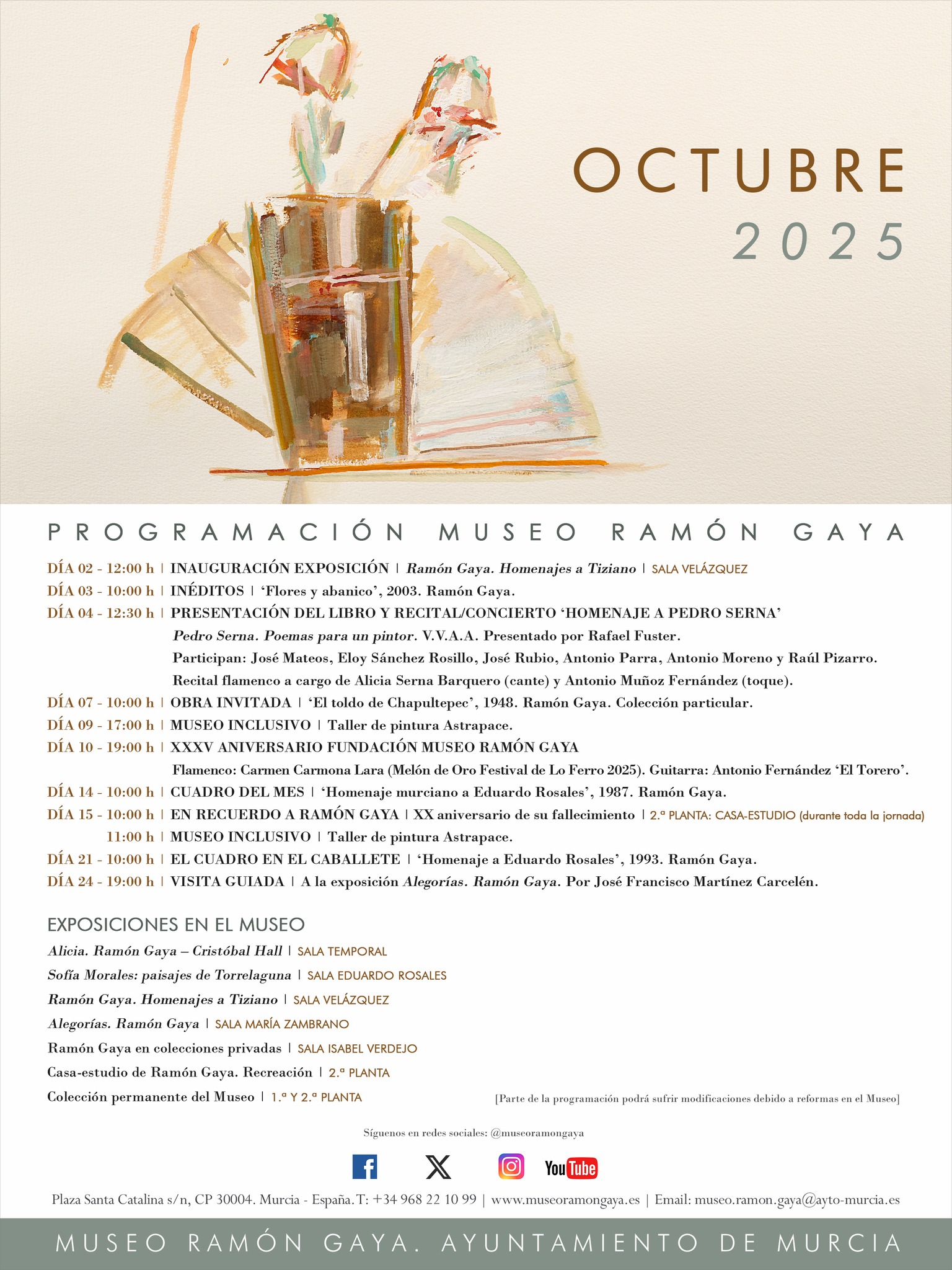 - 11:30 h – Lectura compartida de poemas y ensayos de Ramón Gaya.