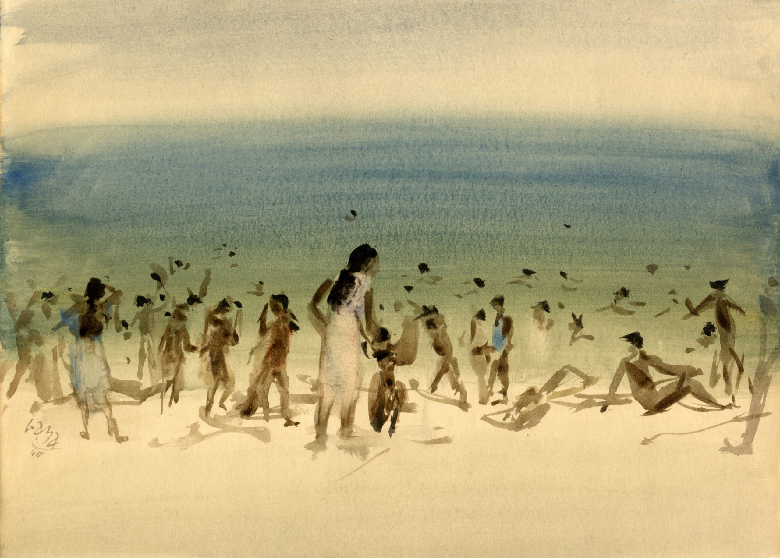 Existen algunas fotos de Juan Guerrero de 1935 donde vemos a Ramón Gaya y Luis Cernuda en Alicante; de fondo la silueta del Peñón de Ifach. De ese tiempo -previo al desastre de la guerra de España contra sí misma- son algunas acuarelas que nos han llegado hasta hoy, como estas ‘Dos barcas’. Un cuadro ‘turneriano’; desvaído y donde un sutil velo parece cubrir toda la pintura, dándole una atmósfera muy cálida. La obra forma parte de la exposición ‘Mediterráneo’ donde el mar está siempre como telón de fondo. Un total de 14 obras.