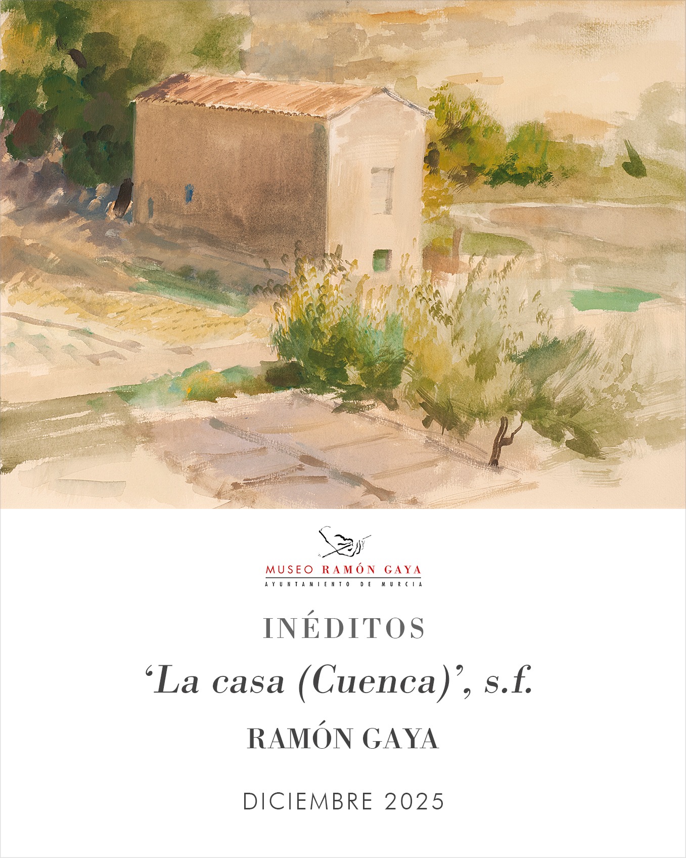 El Museo Ramón Gaya presenta el proyecto INÉDITOS: obras del pintor Ramón Gaya en colecciones privadas, nunca expuestas o desconocidas. Cada mes una nueva obra con la finalidad, no solo de mostrar esos trabajos ocultos, sino de ir sumando obras a ese catálogo razonado imprescindible y necesario de Ramón Gaya que el Museo pone en marcha con el inicio de este ciclo. Una catalogación que pretende reunir toda la obra pictórica del artista murciano, de toda una vida dedicada al oficio de pintor. Será imprescindible contar con la ayuda de los coleccionistas privados para llevar a cabo una tarea que durará años. Son más de tres mil las obras que se atribuyen a Ramón Gaya.