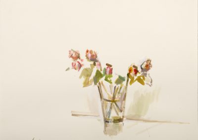 Son obras de trazo tembloroso, pero cargadas de una intensidad conmovedora. En ellas se percibe la conciencia del final, la culminación de todo un camino, de una vida entera consagrada al oficio de pintor. Son cuadros íntimos, domésticos, realizados en su casa de Valencia, donde pinta sus últimos homenajes, unas flores, unos objetos sencillos, que se transforman en su manera de decir la vida, de cantarla una vez más. Así, Ramón Gaya cierra su obra como siempre vivió, celebrando, a pesar de la tragedia, la belleza y la plenitud de estar en el mundo. El pintor acabó sus días cumpliendo esa máxima que tantas veces repitió: «los escritores deben morir escribiendo y los pintores, pintando».