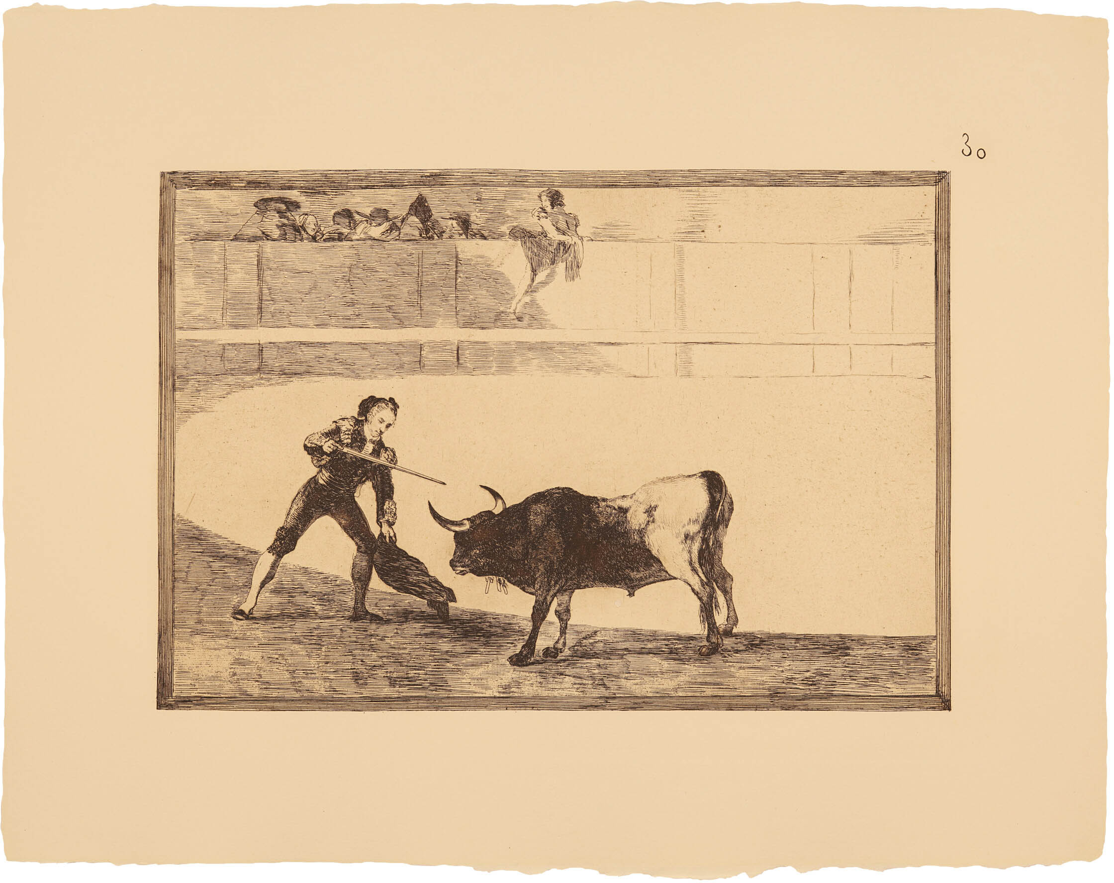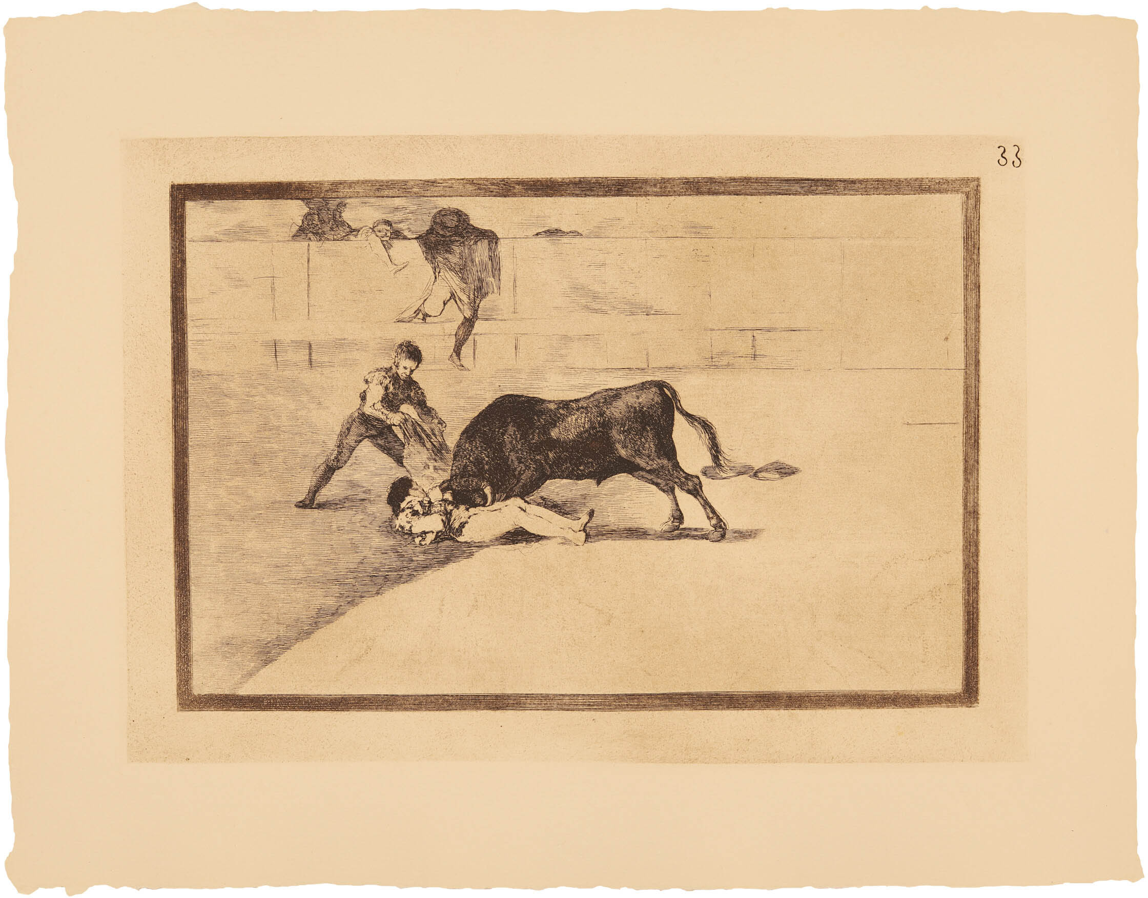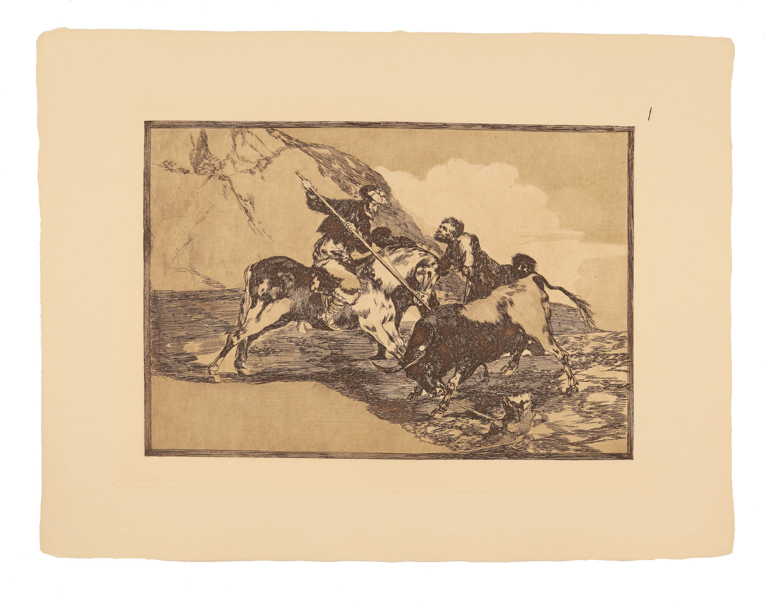 La primera serie de La Tauromaquia fue grabada entre la primavera de 1814 y el otoño de 1816. “Colección de estampas realizadas por “Francisco Goya, pintor de cámara de S.M.”, representando diversas suertes de toros. Véndese en el almacén de estampas, calle Mayor, frente a la casa del Excmo. Sr. conde de Oñate, á 10 Reales, cada una suelta, y a 300 Reales, cada juego completo, que se compone de 33”. (Fuente: Diario de Madrid, 28-10-1816)