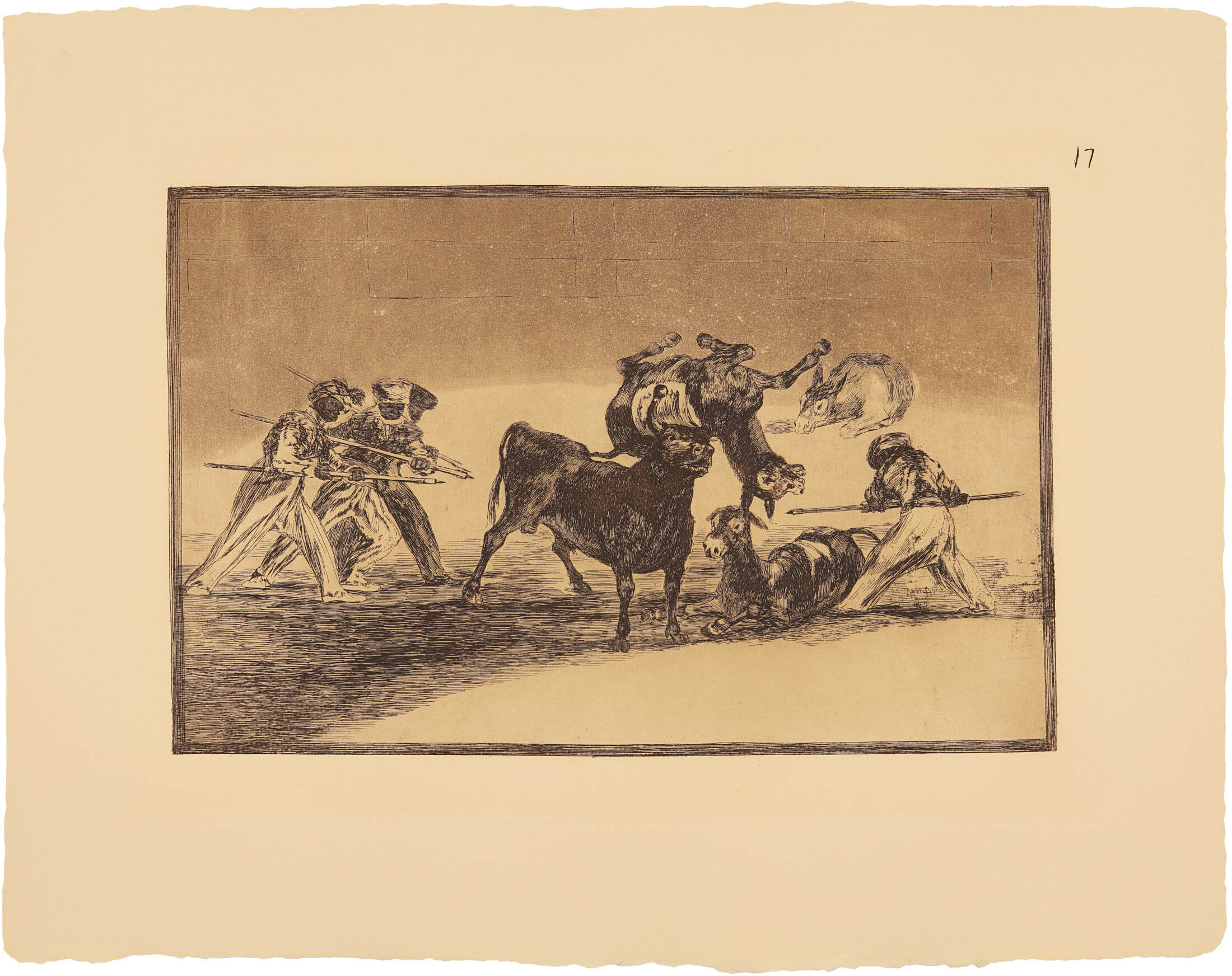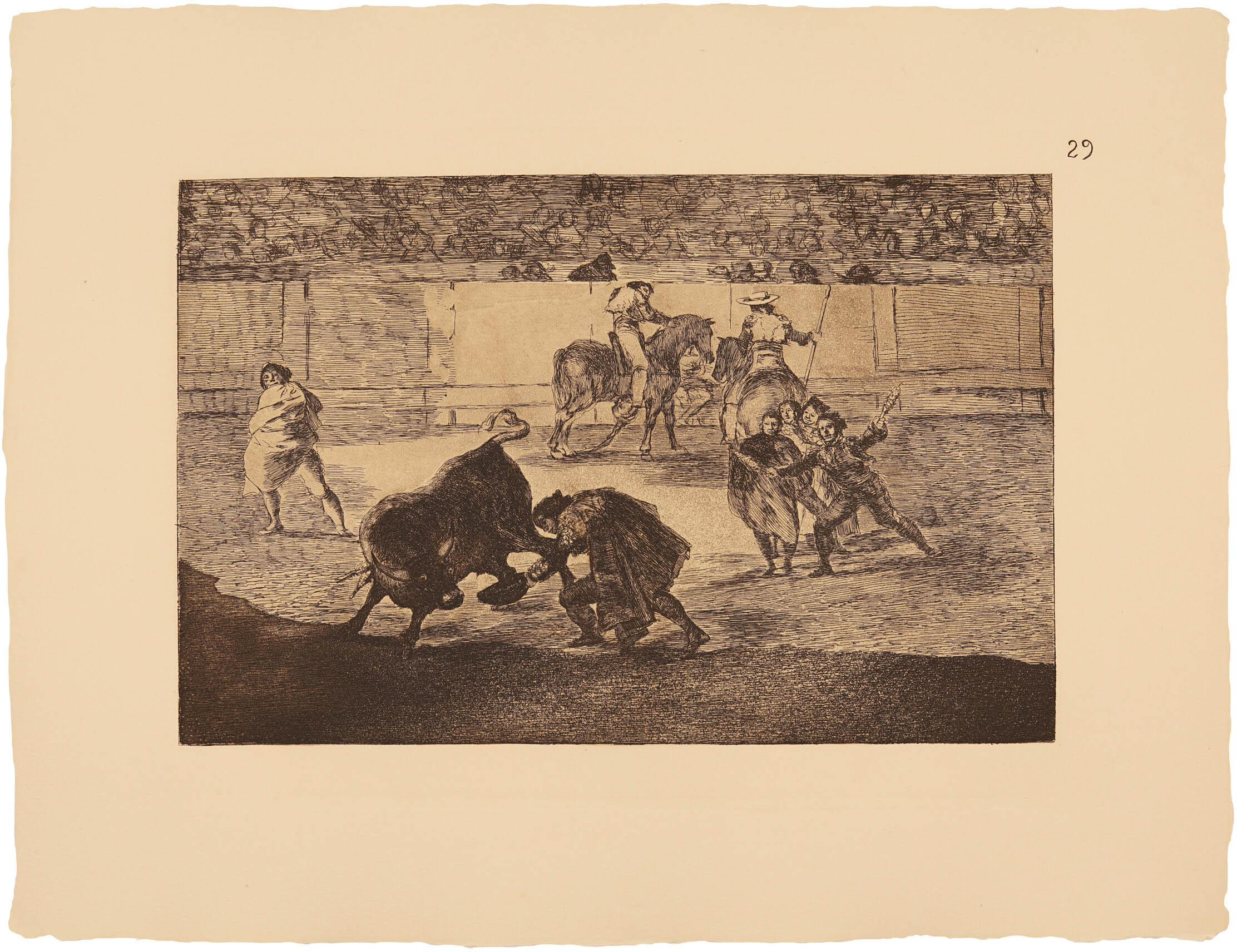 Hay que tener presente que entonces los toros eran casi la única diversión popular y la gran afición de Goya. Es, pues, natural que en este momento, cuando los encargos escaseaban y se imponía el descanso de la paz conseguida con el heroísmo de los españoles, Goya se deleitara en su pasión favorita: los toros.